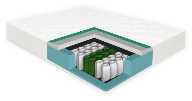 - De kern van het matras bestaat uit pocketveren. Deze veren zijn allen individueel verpakt, zodat iedere veer een individuele gewichtsverdeler is.